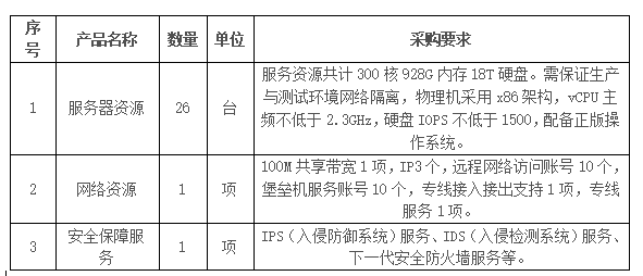 2.4招標范圍:云南省征信有限責任公司2023年云服務資源采購項目,采購內(nèi)容如下: