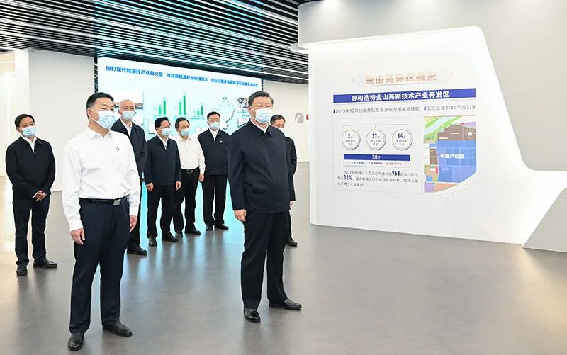 6月7日至8日,中共中央總書記、國家主席、中央軍委主席習近平在內蒙古考察。這是7日下午,習近平在呼和浩特中環(huán)產業(yè)園考察。新華社記者 謝環(huán)馳 攝