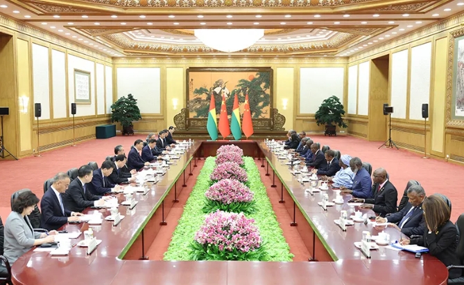 恩巴洛表示,我和代表團(tuán)從抵達(dá)那一刻起就深切感受到中國人民對(duì)非洲兄弟的真誠友好。幾內(nèi)亞比紹和中國關(guān)系良好堅(jiān)固,雙方始終堅(jiān)定相互支持。在幾內(nèi)亞比紹遭遇困難時(shí),中國總是毫不猶豫給予寶貴支持,幾內(nèi)亞比紹人民對(duì)此永不忘記。我們也將一如既往堅(jiān)定地同中國站在一起,堅(jiān)定恪守一個(gè)中國原則,堅(jiān)定支持中方在臺(tái)灣等核心利益問題上的立場(chǎng)。幾內(nèi)亞比紹欽佩中國取得的偉大發(fā)展成就,將中國作為外交最優(yōu)先方向和最重要合作伙伴,希望學(xué)習(xí)借鑒中國發(fā)展理念和經(jīng)驗(yàn),加強(qiáng)經(jīng)貿(mào)投資、基礎(chǔ)設(shè)施、礦產(chǎn)能源等領(lǐng)域合作,助力國家發(fā)展。中國從不搞殖民,從不干涉別國內(nèi)政,從不對(duì)其他國家頤指氣使,從來給予小國平等和尊重,從來說到做到、言行一致。中國給非洲國家?guī)淼氖菍W(xué)校、醫(yī)院、公路等造福非洲人民的合作項(xiàng)目。幾內(nèi)亞比紹高度贊賞中方為幫助非洲大陸發(fā)展發(fā)揮的重要作用和作出的積極貢獻(xiàn),積極支持中方舉辦新一屆中非合作論壇峰會(huì)。幾內(nèi)亞比紹支持習(xí)近平主席提出的共建“一帶一路”倡議和全球發(fā)展倡議、全球安全倡議、全球文明倡議,愿同中方密切在多邊事務(wù)中溝通協(xié)作,推動(dòng)構(gòu)建人類命運(yùn)共同體。