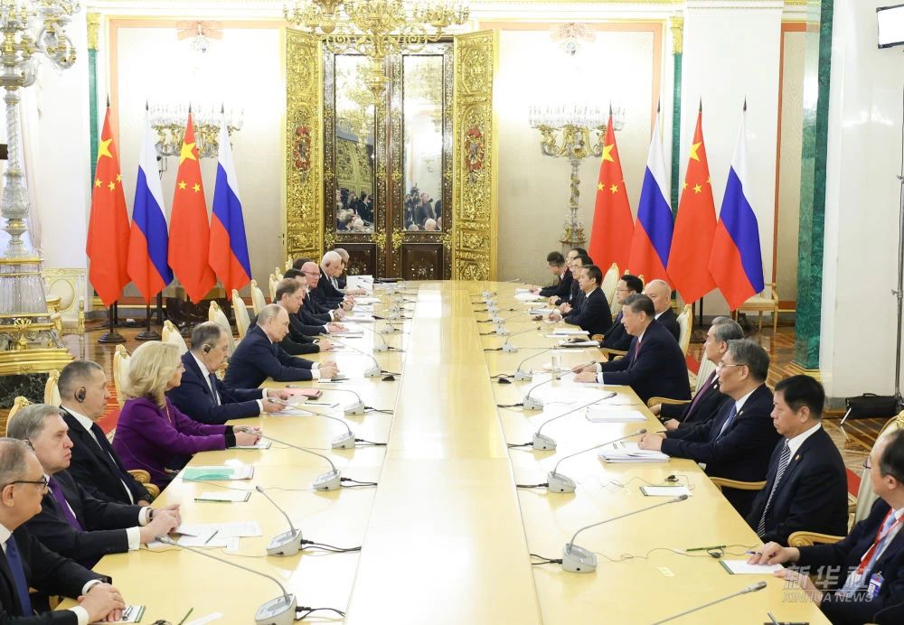 習(xí)近平指出,中俄雙方要堅(jiān)持合作大方向,排除外部干擾,讓合作“穩(wěn)”的基礎(chǔ)更堅(jiān)實(shí)、“進(jìn)”的動能更充足。要發(fā)揮兩國資源稟賦和產(chǎn)業(yè)體系互補(bǔ)優(yōu)勢,拓展經(jīng)貿(mào)、能源、農(nóng)業(yè)、航空航天、人工智能等領(lǐng)域高質(zhì)量互利合作;以共建“一帶一路”和歐亞經(jīng)濟(jì)聯(lián)盟對接為平臺,構(gòu)建高標(biāo)準(zhǔn)互聯(lián)互通格局;充分釋放“中俄文化年”潛能,加強(qiáng)教育、電影、旅游、體育、地方等合作,促進(jìn)深層次民心相通;密切在聯(lián)合國、上海合作組織、金磚國家等多邊平臺協(xié)調(diào)和配合,團(tuán)結(jié)全球南方,堅(jiān)持真正的多邊主義,引領(lǐng)全球治理變革正確方向。