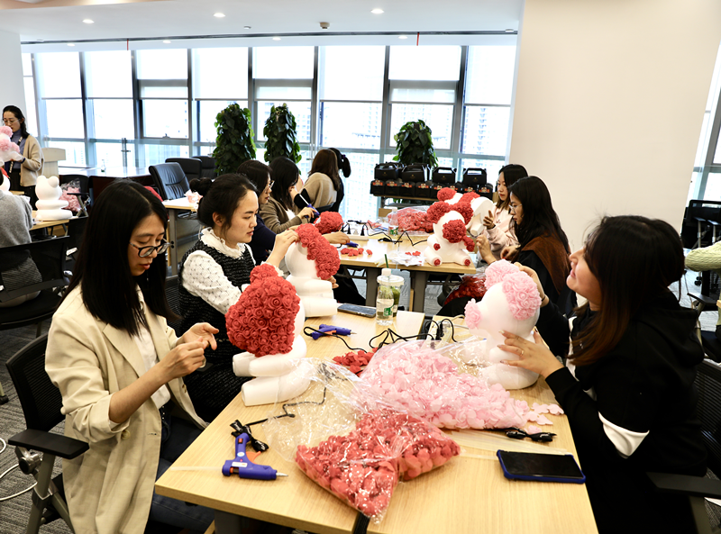 插花培訓(xùn)邀請(qǐng)了專業(yè)花藝師,帶領(lǐng)大家學(xué)習(xí)選材、配色、布局等插花方法,并進(jìn)行了現(xiàn)場(chǎng)實(shí)操,在花藝?yán)蠋煹闹笇?dǎo)下,女職工們紛紛拿起花朵,認(rèn)真構(gòu)思,投入創(chuàng)作,熱烈地相互交流,現(xiàn)場(chǎng)充滿歡聲笑語。今后,集團(tuán)工會(huì)將持續(xù)發(fā)揮在職工家庭文明建設(shè)和豐富員工精神文化生活中的積極作用,開展形式多樣的職工文體活動(dòng),進(jìn)一步增強(qiáng)工會(huì)組織的吸引力、凝聚力,助力集團(tuán)女職工對(duì)美好生活的追求,為女職工全面發(fā)展和幸福生活營(yíng)造良好氛圍。