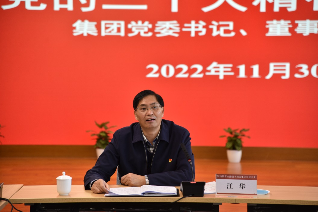 ?江華同志強調(diào),一是要筑牢政治忠誠,堅決擁護“兩個確立”,自覺做到“兩個維護”。二是要狠抓任務(wù)落實,切實推動集團高質(zhì)量發(fā)展;要充分發(fā)揮好金控集團的功能定位,找到著力點、發(fā)力點;融擔(dān)公司要發(fā)揮好放大器和穩(wěn)定器的作用,積極幫助企業(yè)紓困。三是要搶抓發(fā)展機遇,系統(tǒng)謀劃新一輪國企改革行動方案。四是要積極研究抓黨建工作促進企業(yè)改革發(fā)展工作,切實以黨建引領(lǐng)推動集團高質(zhì)量發(fā)展。五是要堅持底線思維,加強風(fēng)險防范,堅決守住不發(fā)生系統(tǒng)性金融風(fēng)險的底線。六是要樹立效率意識,加強責(zé)任意識,持續(xù)深化兩個革命,促進作風(fēng)轉(zhuǎn)變。七是要保持戰(zhàn)略定力,堅持全面從嚴(yán)治黨。