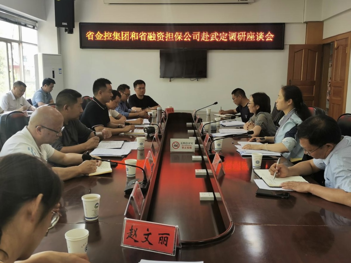 武定縣政府、相關(guān)職能部門及金融機(jī)構(gòu)負(fù)責(zé)人、省委組織部派駐武定代表等人員參加座談會(huì),集團(tuán)資本運(yùn)營部、省融資擔(dān)保公司、楚雄州擔(dān)保公司有關(guān)人員陪同調(diào)研。