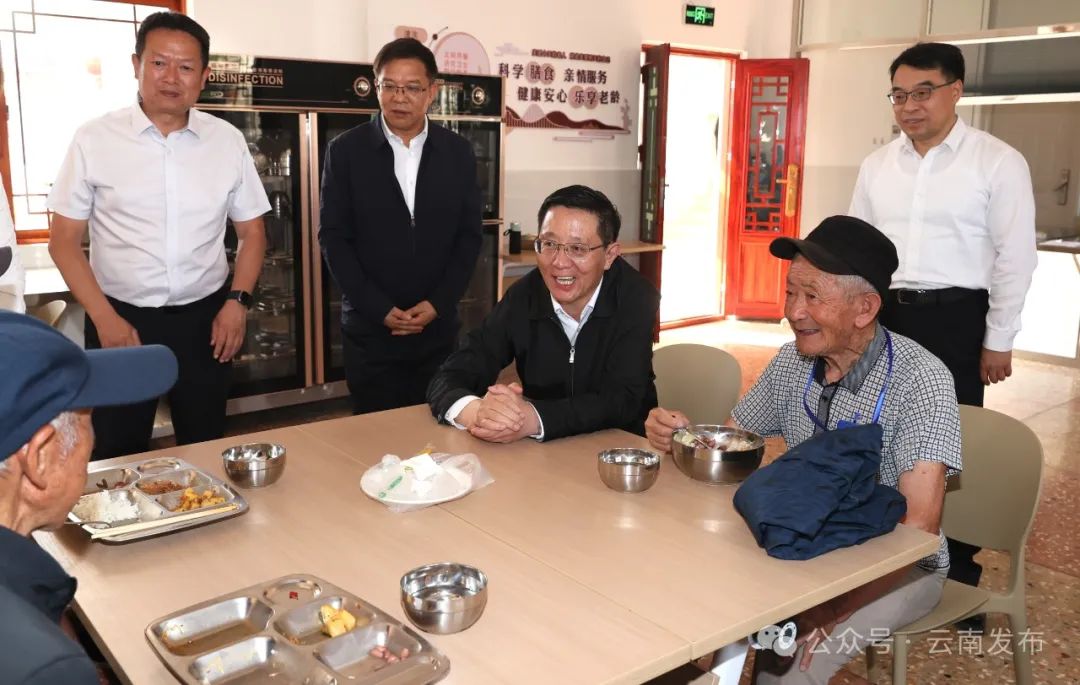 王予波在紅塔區(qū)大營(yíng)社區(qū)幸福食堂與老年群眾交流。