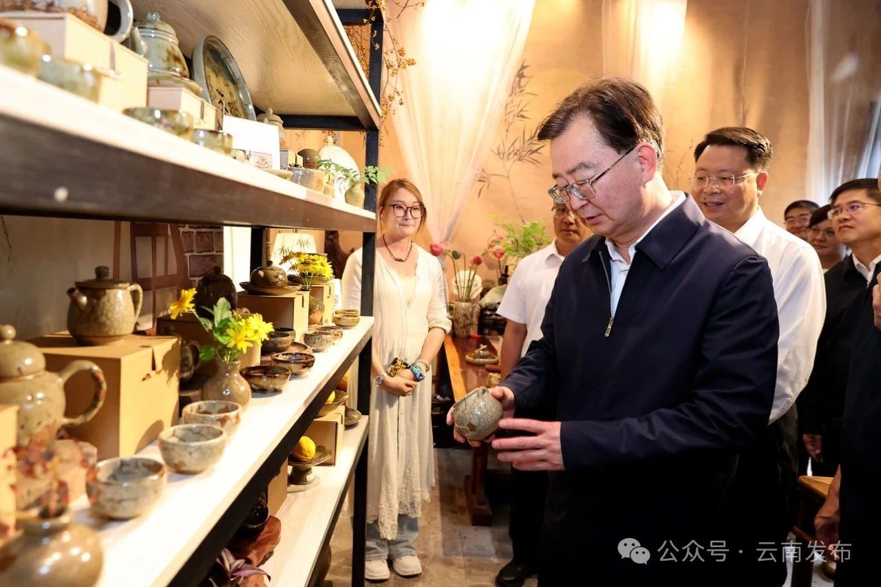 歷史文化名城建水,古城、古村與紫陶文化交相輝映。王寧來到建水古城、團山古村調(diào)研文旅融合發(fā)展,與當?shù)馗刹俊⒋迕?、商戶深入交流,強調(diào)要全面貫徹落實習(xí)近平文化思想,切實保護利用好古城古村、傳統(tǒng)街區(qū)、古建筑、重要文化地標等,創(chuàng)新思路舉措,堅持政府引導(dǎo)、社會參與,形成可持續(xù)投入、建設(shè)、發(fā)展的模式。王寧指出,云南不僅自然生態(tài)獨具魅力,深厚的歷史文化也讓人心向往之,要把文化保護傳承有機融入旅游旅居、鄉(xiāng)村振興,為地方發(fā)展賦能、為群眾增收添力。到千年臨安古城淘一把紫陶壺是很多游客的念想。王寧強調(diào),既要傳承傳統(tǒng)工藝,又要學(xué)習(xí)運用現(xiàn)代設(shè)計,與時俱進將建水紫陶推向更加廣闊的國內(nèi)外市場,煥發(fā)新的活力。