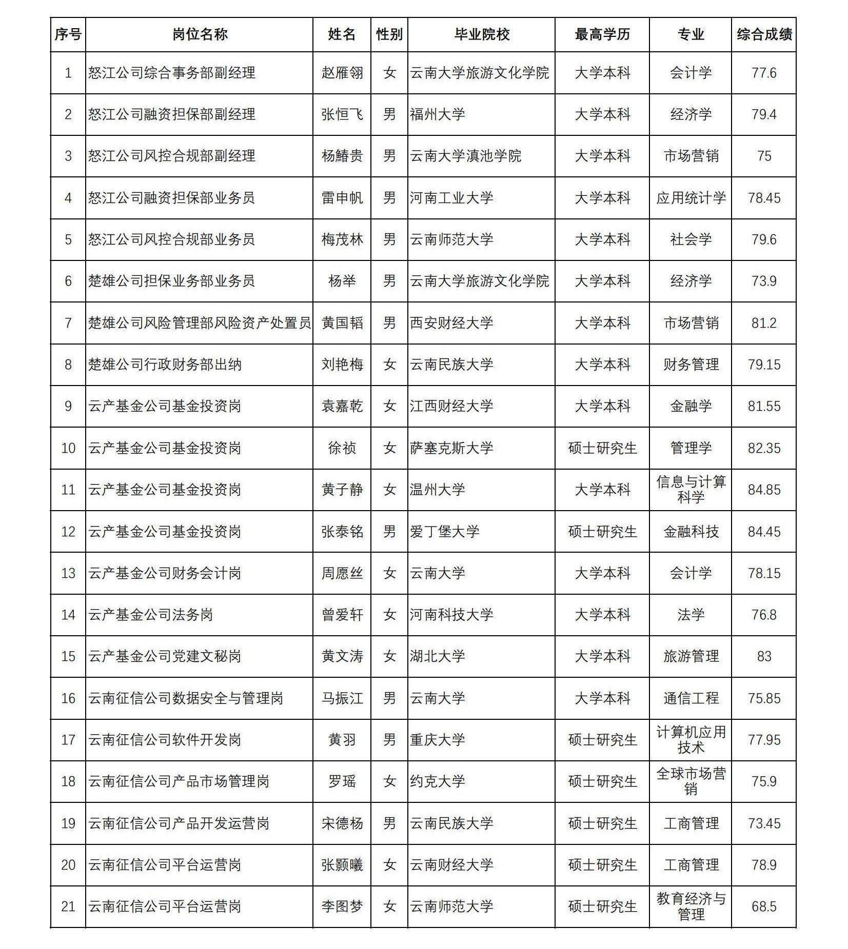 附件:云南省國有金融資本控股集團有限公司所屬公司2022年招聘擬錄用人員信息表