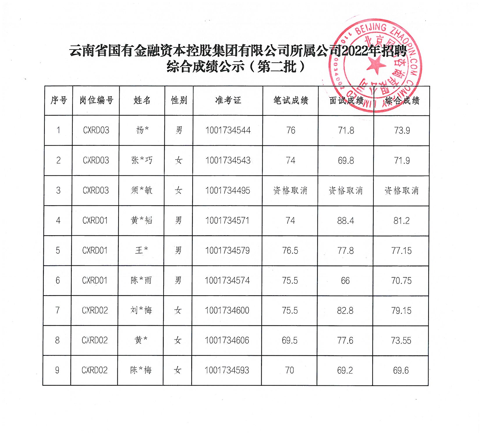 ?附件:云南省國(guó)有金融資本控股集團(tuán)有限公司所屬公司2022年招聘綜合成績(jī)表(第二批)