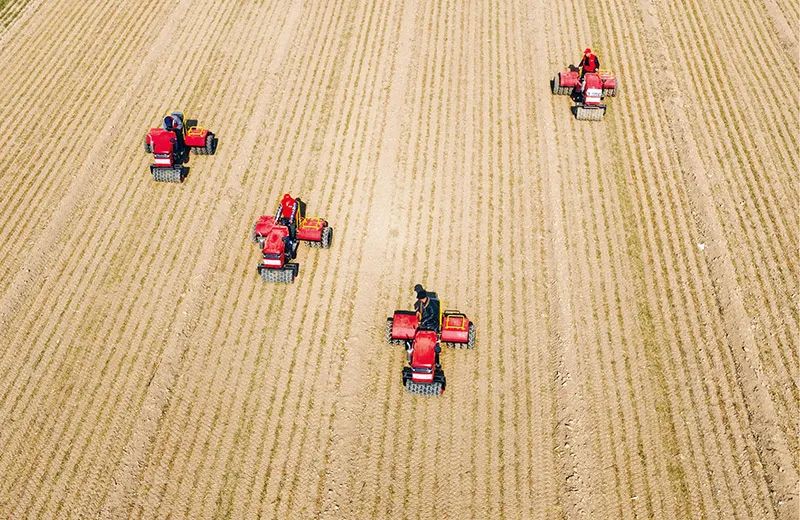 我國糧食安全保障能力持續(xù)提升,糧食生產(chǎn)實現(xiàn)“十九連豐”,總產(chǎn)量連續(xù)8年穩(wěn)定在1.3萬億斤以上。圖為2023年2月4日,在山東省聊城市東昌府區(qū)斗虎屯鎮(zhèn)楊廟村,運興農(nóng)機(jī)專業(yè)合作社的員工駕駛著鎮(zhèn)壓機(jī)械為托管的冬小麥進(jìn)行鎮(zhèn)壓控旺長保墑情作業(yè)。 人民圖片 張振祥/攝