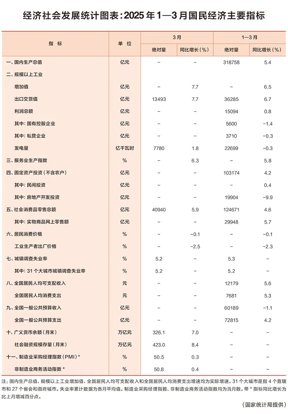 經(jīng)濟(jì)社會(huì)發(fā)展統(tǒng)計(jì)圖表:2025年1—3月國(guó)民經(jīng)濟(jì)主要指標(biāo)
