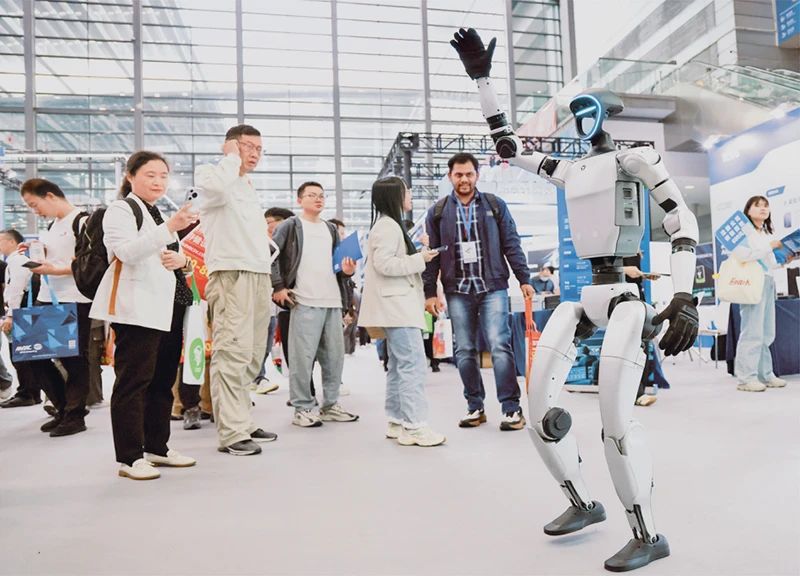 2025年4月9日,第十三屆中國電子信息博覽會在深圳會展中心(福田)開幕,展會聚焦智能終端、光電顯示、人工智能、大數(shù)據(jù)存儲、基礎元器件、低空經(jīng)濟等前沿重點領域,吸引了超千家企業(yè)參展。圖為開幕當日,觀眾在觀看人形機器人展示。新華社記者 梁旭/攝