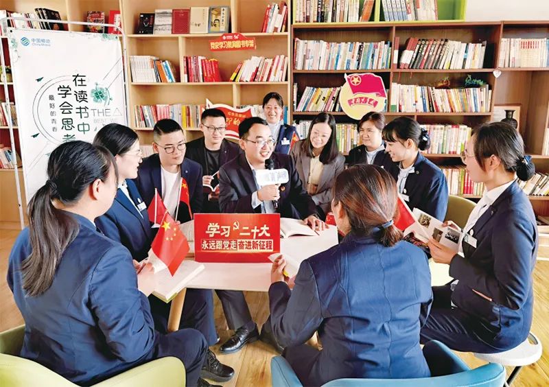 圖為2022年10月28日,江蘇移動“青年愛研習(xí)”宣講“青騎兵隊”向一線員工宣講黨的二十大精神。 江蘇移動團(tuán)委供圖