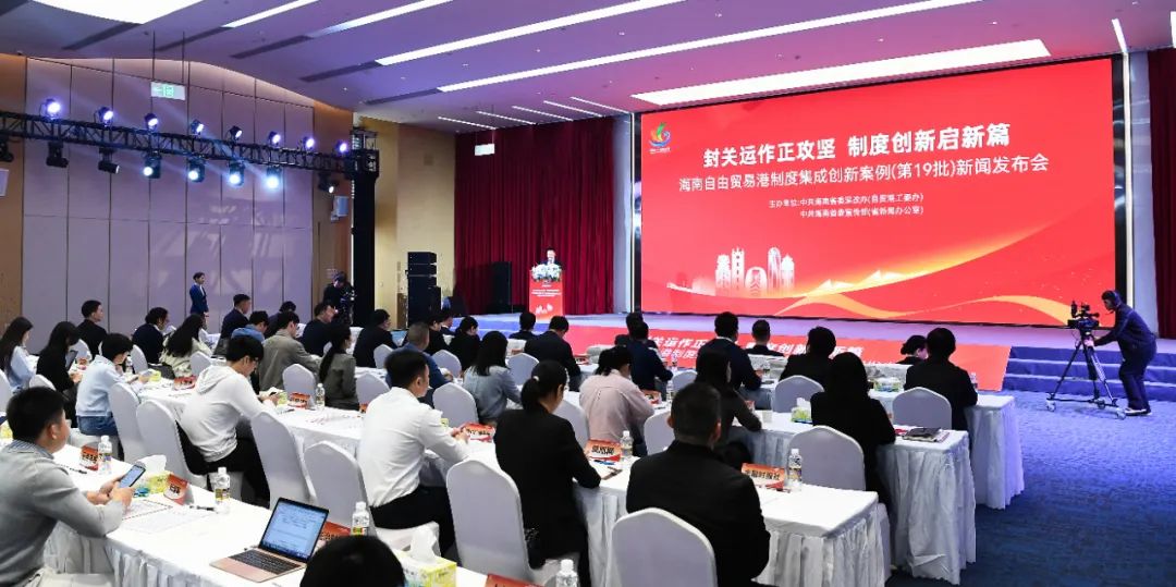 2025年2月19日,海南自由貿(mào)易港制度集成創(chuàng)新案例(第19批)新聞發(fā)布會在??谂e行,加工增值內(nèi)銷免關(guān)稅政策從“試驗點”到“試驗田”等6項案例入選這批案例。圖為當(dāng)日新聞發(fā)布會現(xiàn)場。新華社記者 楊冠宇/攝