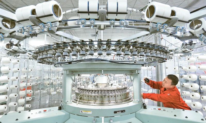 近年來,我國持續(xù)引導(dǎo)紡織企業(yè)加大新技術(shù)、新裝備、新工藝的研發(fā)和投入,加快信息化和工業(yè)化融合升級改造。圖為2025年5月19日,山東省青島市即墨區(qū)一家紡織企業(yè)的工人在生產(chǎn)出口海外市場的服裝面料。 新華社發(fā) 梁孝鵬/攝