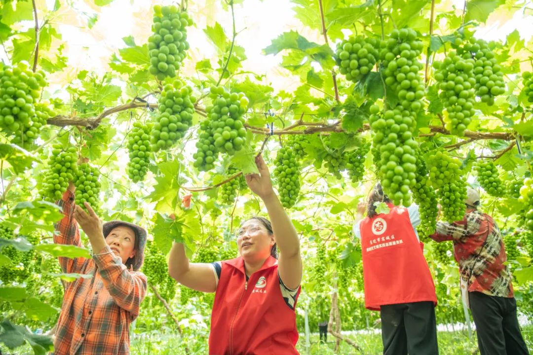 近年來,江蘇省宿遷市宿城區(qū)支口街道大力實施黨建引領(lǐng)強村富民工程,采取“黨建+合作社+農(nóng)戶”運作模式,組織黨員志愿者走進田間地頭生產(chǎn)一線,引導(dǎo)群眾因地制宜發(fā)展山楂、葡萄等特色產(chǎn)業(yè)種植,拓寬增收渠道,助力鄉(xiāng)村振興。圖為2023年6月30日,在宿遷市宿城區(qū)支口街道探楚社區(qū)葡萄種植基地,黨員志愿者和果農(nóng)一起管護葡萄。 ?人民圖片 徐江海/攝