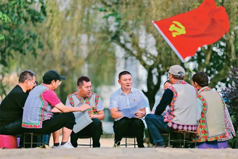 云南省曲靖市陸良縣紀(jì)委監(jiān)委以“清風(fēng)講壇”為載體,組織宣講員通過(guò)面對(duì)面、互動(dòng)化、通俗化的方式開展宣講活動(dòng),推動(dòng)黨的二十大精神在基層落地生根。圖為2022年10月26日,陸良縣龍海鄉(xiāng)小新村的彝族群眾參加宣講活動(dòng)現(xiàn)場(chǎng)。 人民視覺 王勇/攝