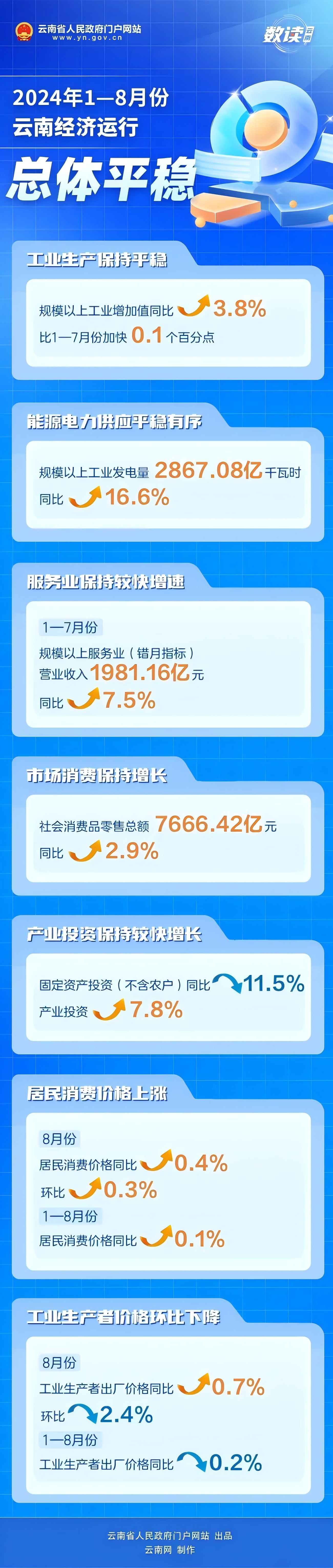 公布2024年1—8月份云南經(jīng)濟運行情況