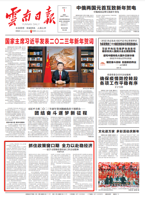 ?全力以赴穩(wěn)經(jīng)濟,必須研究吃透相關(guān)政策,主動謀劃、積極爭取。中央經(jīng)濟工作會議強調(diào),2023年要繼續(xù)實施積極的財政政策和穩(wěn)健的貨幣政策,加大宏觀政策調(diào)控力度,明確提出“積極的財政政策要加力提效,穩(wěn)健的貨幣政策要精準有力,產(chǎn)業(yè)政策要發(fā)展和安全并舉,科技政策要聚焦自立自強,社會政策要兜牢民生底線”;2022年11月,國務(wù)院出臺關(guān)于支持云南加快建設(shè)我國面向南亞東南亞輻射中心的意見。這些政策具有很強的指導性和預期性,我們要認真學習、深刻領(lǐng)會,主動服務(wù)和融入國家發(fā)展戰(zhàn)略,在搶抓政策機遇上下足功夫,創(chuàng)造性抓好貫徹落實。