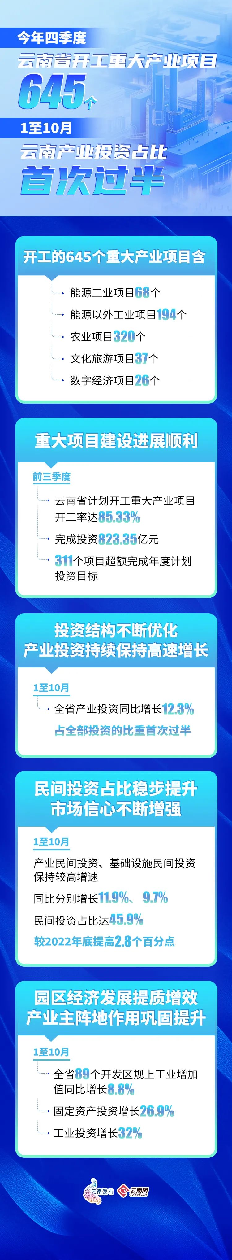 據(jù)省委、省政府舉行的四季度重大產(chǎn)業(yè)項(xiàng)目調(diào)度推進(jìn)會(huì)(以下簡(jiǎn)稱“項(xiàng)目調(diào)度推進(jìn)會(huì)”)消息,今年四季度,云南省開(kāi)工重大產(chǎn)業(yè)項(xiàng)目共645個(gè),其中,能源工業(yè)項(xiàng)目68個(gè)、能源以外工業(yè)項(xiàng)目194個(gè)、農(nóng)業(yè)項(xiàng)目320個(gè)、文化旅游項(xiàng)目37個(gè)、數(shù)字經(jīng)濟(jì)項(xiàng)目26個(gè)。
