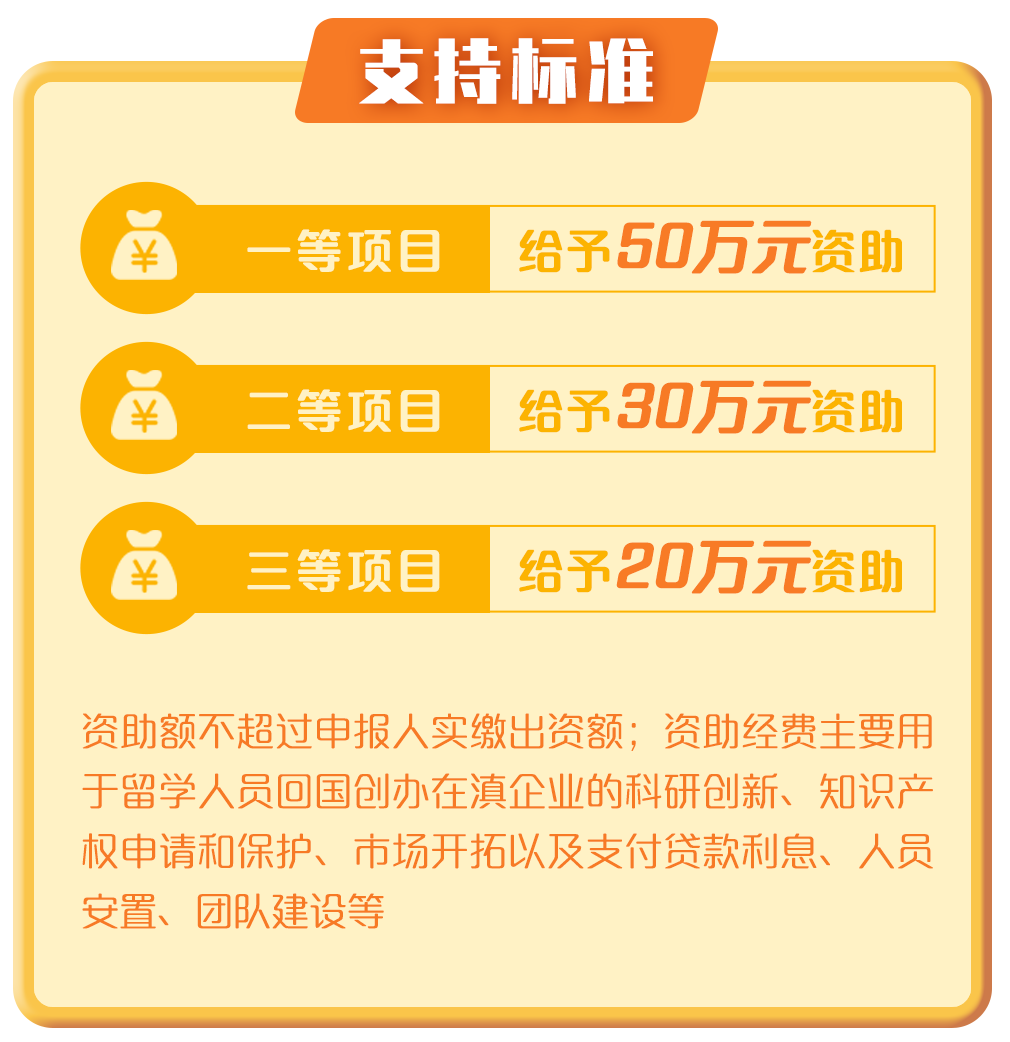 ?為進(jìn)一步加強(qiáng)留學(xué)人員回國(guó)在滇創(chuàng)業(yè)工作,吸引更多留學(xué)人員積極投身新時(shí)代人才強(qiáng)省戰(zhàn)略,近日,云南省人力資源和社會(huì)保障廳、云南省財(cái)政廳聯(lián)合印發(fā)了《云南省留學(xué)人員回國(guó)在滇創(chuàng)業(yè)支持計(jì)劃實(shí)施細(xì)則》,分三個(gè)等次對(duì)留學(xué)人員回國(guó)在滇創(chuàng)業(yè)項(xiàng)目擇優(yōu)給予經(jīng)費(fèi)支持。