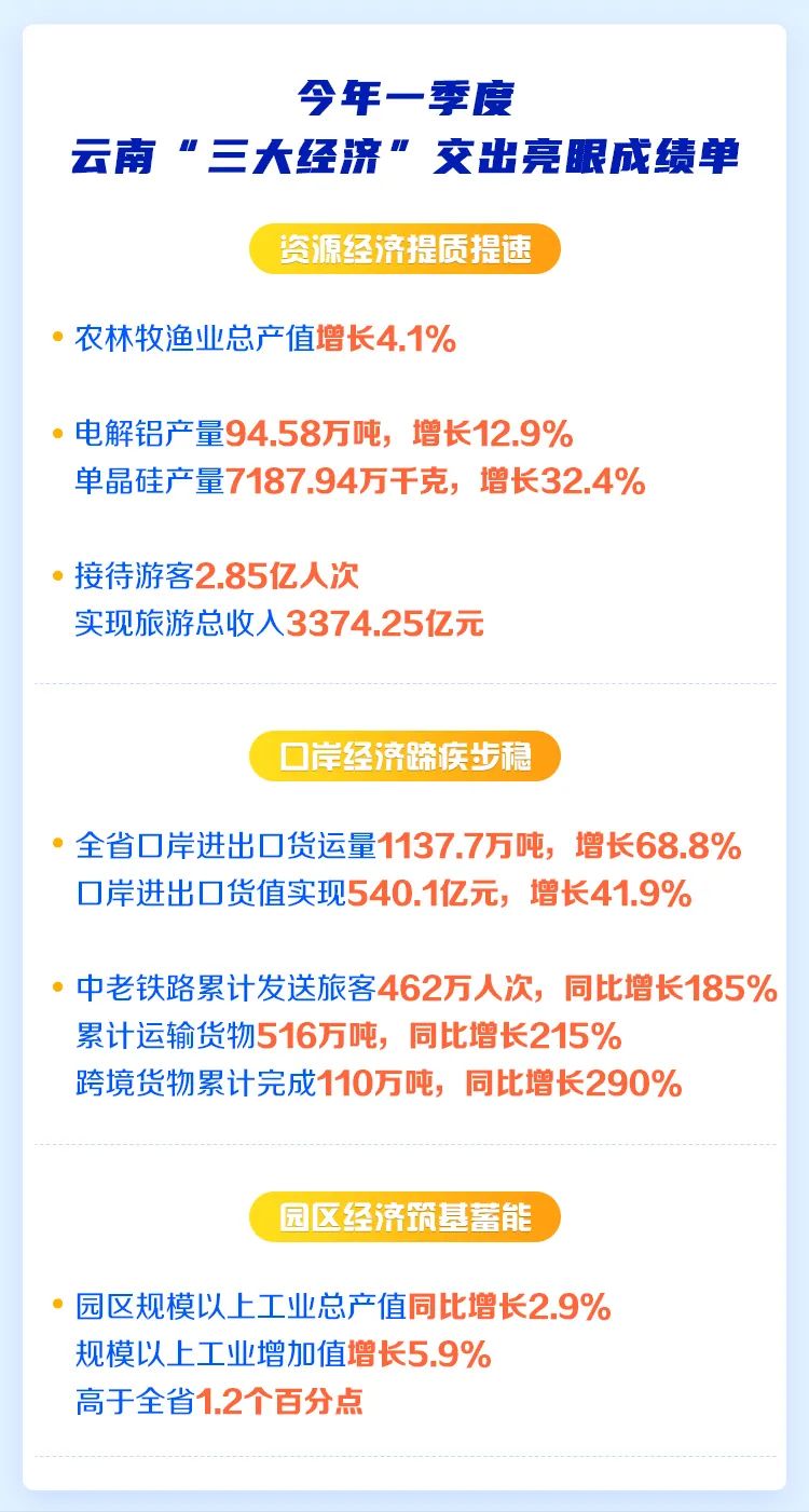 今年以來,全省上下鼓足干勁,全力以赴拼經(jīng)濟,把壯大資源經(jīng)濟、口岸經(jīng)濟、園區(qū)經(jīng)濟作為推動全省經(jīng)濟高質(zhì)量跨越式發(fā)展的重要抓手,深挖資源利用、口岸提升和園區(qū)建設潛力,充分發(fā)揮云南比較優(yōu)勢和增長潛力,助力一季度經(jīng)濟實現(xiàn)平穩(wěn)開局。