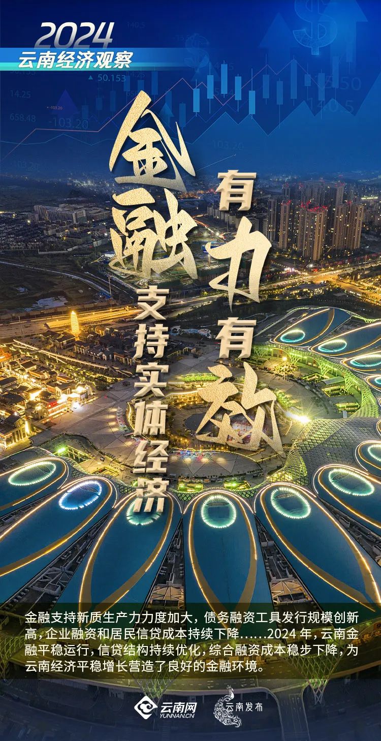 金融支持新質(zhì)生產(chǎn)力力度加大,債務(wù)融資工具發(fā)行規(guī)模創(chuàng)新高,企業(yè)融資和居民信貸成本持續(xù)下降……2024年,云南金融平穩(wěn)運(yùn)行,信貸結(jié)構(gòu)持續(xù)優(yōu)化,綜合融資成本穩(wěn)步下降,為云南經(jīng)濟(jì)平穩(wěn)增長營造了良好的金融環(huán)境。