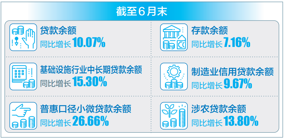 聚焦有效投資及重點(diǎn)領(lǐng)域,截至6月末,全省基礎(chǔ)設(shè)施行業(yè)中長期貸款余額1.06萬億元,同比增長15.30%;涉農(nóng)貸款余額1.38萬億元,同比增長13.80%;綠色貸款余額4510.97億元,同比增長24.72%;制造業(yè)信用貸款余額846.39億元,同比增長9.67%,占制造業(yè)貸款的比重為47.98%。