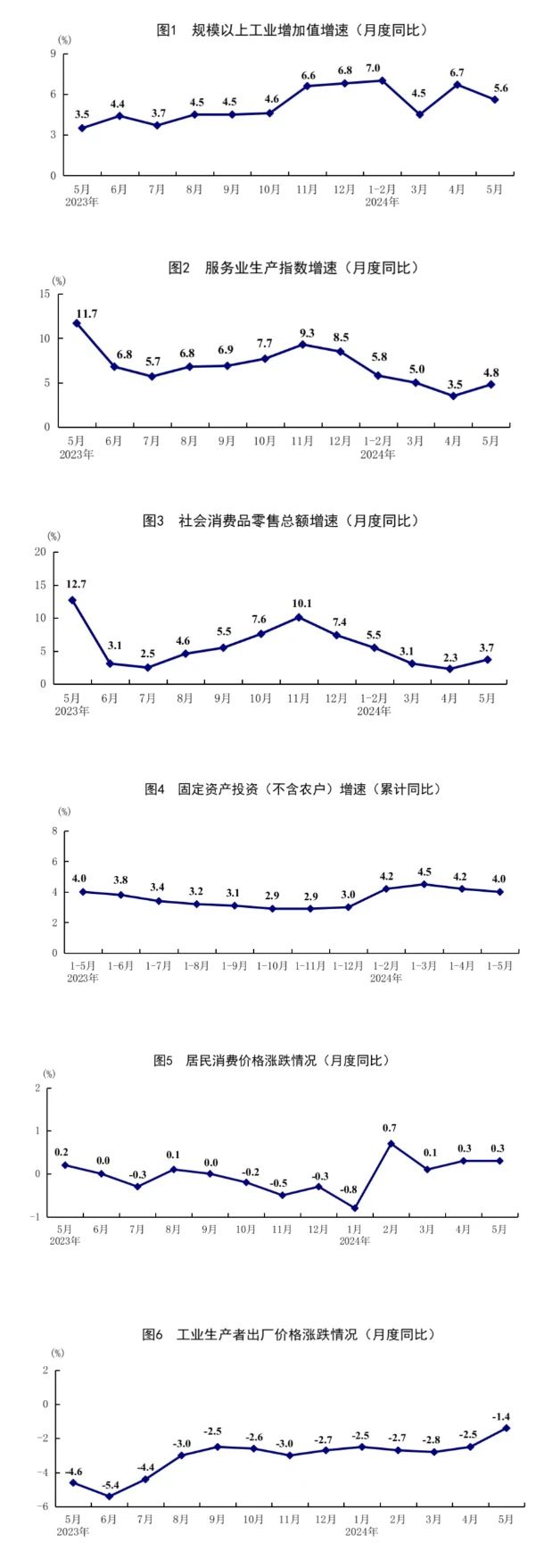 總的來(lái)看,5月份,經(jīng)濟(jì)運(yùn)行總體平穩(wěn),主要指標(biāo)有所回升,新動(dòng)能較快成長(zhǎng)。但也要看到,當(dāng)前外部環(huán)境復(fù)雜嚴(yán)峻,國(guó)內(nèi)有效需求依然不足,經(jīng)濟(jì)持續(xù)回升向好仍面臨諸多困難挑戰(zhàn)。下階段,要堅(jiān)持以習(xí)近平新時(shí)代中國(guó)特色社會(huì)主義思想為指導(dǎo),堅(jiān)持穩(wěn)中求進(jìn)工作總基調(diào),完整、準(zhǔn)確、全面貫徹新發(fā)展理念,加快構(gòu)建新發(fā)展格局,著力推動(dòng)高質(zhì)量發(fā)展,靠前發(fā)力有效落實(shí)已經(jīng)確定的宏觀政策,因地制宜發(fā)展新質(zhì)生產(chǎn)力,堅(jiān)定不移深化改革擴(kuò)大開放,鞏固和增強(qiáng)經(jīng)濟(jì)回升向好態(tài)勢(shì),持續(xù)推動(dòng)經(jīng)濟(jì)實(shí)現(xiàn)質(zhì)的有效提升和量的合理增長(zhǎng)。